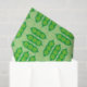 Ein Wiederholungsmuster der glücklichen Erbsen in einer Hülse auf einem grünen Hintergrund.