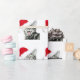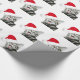 Glücklich und mit einem ho ho ho Silber oder grauen einem Tabbykätzchen in einer Weihnachtsmannmütze lachend, holen Sie einem Lächeln zu jeder Gesichtskatzenliebhaber Weihnachtsfeiertags-Verpackungspapier