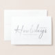 Einfache, stilvolle Foto Happiest Howlidays Silberfolie Grußkarte mit moderner minimalistischer handgeschriebener Schrift Typografie in Silber. Das Foto Ihres geliebten Hauses und Textes kann leicht für ein so einzigartiges Design wie Ihr Wunschbaby personalisiert werden! Das abgebildete Bild dient nur zur Veranschaulichung, um durch Ihr eigenes Foto ersetzt zu werden. Das Bild des Platzhalters ist ein hübscher kleiner Hund mit minimalistischem Hintergrund.