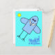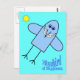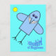 Bluebird of Happiness Postcard. Comicblauer Cartoon mit einem großen, goofy-Lächeln, das im blauen Himmel mit hellgelber Sonne fliegt. Text lautet: Bluebird of Happiness. Lächeln wird zu jedem Tag! Ein tolles Geschenk für jemanden, der ein Grinsen verdient, oder vielleicht für diejenigen, die Sie wünschen, würde ein bisschen mehr lächeln! Verbreitet die Botschaft des Glücks!