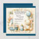 Herzlich willkommen in der Welt mit unserer "Bundle of Joy" Baby Dusche Einladung. Diese exquisite Karte ist mit einem zarten illustrierten Teddybär geschmückt, der bereit ist, Ihre fröhlichen Neuigkeiten auf und ab zu heben! Die in Pastelltönen gehaltene Farbpalette strahlt die Unschuld des neuen Lebens aus, mit einem Korb, der mit Babyessentialen, einer Babyflasche und einer Touch Whimsy gefüllt ist.