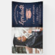 Fügen Sie eine personalisierte Touch zu Uni oder High School Abschluss Party Dekorationen mit diesem benutzerdefinierten Foto marineblau und rosa Banner. Das Design besticht durch eine trendige Rose mit goldenen Imitaten aus metallischem Folienmörtel, stilvolle moderne Typografie, handgeschriebene Schriftzeichen-Kalligraphie und ein Graduiertenbild, wie z.B. ein Seniorenbild oder ein Bild aus der Antrittsfeier. Bitte beachten Sie, dass Rose Gold in Druckfarbe ist, nicht in Metallic. Dieses Party-Schild ist eine elegante Art, den besonderen Tag zu feiern. Herzlichen Glückwunsch an den Absolventen!