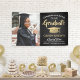 Fügen Sie eine personalisierte Touch zu Uni oder High School Abschluss Party Dekorationen mit diesem benutzerdefinierten Foto schwarz, gold und weiß Banner. Das Design besticht durch ein schwarzes Imitat aus rostfreiem Edelstahl, eine goldgeflochtene Folie aus Mörtel, eine stilvolle moderne Typografie, handgeschriebene Schriftzeichen-Kalligraphie und ein Foto des Absolventen, wie z.B. ein Seniorenbild oder ein Bild aus der Anlaufzeremonie. Bitte beachten Sie, dass Gold farblich gedruckt ist, nicht metallische Folie. Dieses Party-Schild ist eine elegante Art, den besonderen Tag zu feiern. Herzlichen Glückwunsch an den Absolventen!