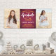 Fügen Sie eine personalisierte Touch zu Uni oder High School Abschluss Party Dekorationen mit diesem Mond, Gold und Weiß Custom Foto Banner. Das Design besticht durch einen bordeauxroten Hintergrund, eine stilvolle moderne Typografie, handgeschriebene Schriftzeichen-Kalligraphie und 2 Fotos des Absolventen, wie Seniorenbilder oder Bilder aus der Anlaufzeremonie. Bitte beachten Sie, dass Gold gelbe Farbe hat, nicht metallische Folie. Dieses Party-Schild ist eine elegante Art, den besonderen Tag zu feiern. Herzlichen Glückwunsch an den Absolventen!