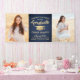 Fügen Sie eine elegante personalisierte Touch zu Uni oder High School Abschluss Party Dekorationen mit diesem navy blauen und goldenen Custom Foto Banner. Das Design umfasst ein Imitat mit Goldfolienmörtel, eine stilvolle moderne Typografie, eine handgeschriebene Schriftzeichen-Kalligraphie und 2 Fotos des Absolventen, wie Seniorenbilder oder Bilder aus der Antrittsfeier. Bitte beachten Sie, dass Gold farblich gedruckt ist, nicht metallische Folie. Dieses Party-Schild ist eine stilvolle Art, den besonderen Tag zu feiern. Herzlichen Glückwunsch an den Absolventen!
