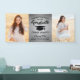 Fügen Sie eine personalisierte Touch zu Uni oder High School Abschluss Party Dekorationen mit diesem schwarz und silber angepassten 2-Foto-Banner. Das Design besticht durch einen Imitat aus metallisch gebürstetem Edelstahl-Hintergrund, stilvolle moderne Typografie, handgeschriebene Schriftzeichen-Kalligraphie und zwei Fotos des Absolventen, wie Seniorenbilder oder Bilder aus der Anlaufzeremonie. Der gesamte Text ist einfach anzupassen. Dieses Party-Schild ist eine elegante Art, den besonderen Tag zu feiern. Herzlichen Glückwunsch an den Absolventen!