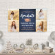 Fügen Sie eine personalisierte Touch zu Uni oder High School Abschluss Party Dekorationen mit diesem benutzerdefinierten 4-Foto Collage blau, Kupfer und weiß Banner. (IMAGE PLACEMENT TIP: Eine einfache Möglichkeit, ein Foto genau so zu zentrieren, wie Sie es gewollt haben, ist es, es einzuschneiden, bevor Sie es auf die Zazzle-Website hochladen.) Das Design zeichnet sich durch einen blauen Hintergrund aus, Imitat-Folientafel, stilvolle moderne Typografie, handgeschriebene Schriftzeichen-Kalligraphie und vier Fotos des Absolventen aus, wie Seniorenbilder oder Bilder aus der Anlaufzeremonie. Bitte beachten Sie, dass Kupfer farbig ist, nicht metallisch. Dieses Party-Schild ist eine elegante Art, den besonderen Tag zu feiern. Herzlichen Glückwunsch an den Absolventen!