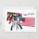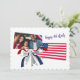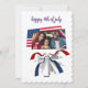 Der 4. Juli ist eine Independence Holiday Card Zusammensetzung und enthält mehrere anpassbare Elemente. Auf der linken Seite, in Form einer Fahne, gibt es einen Platz, um Ihr Foto einzufügen, oder jedes Logo oder Symbol Ihrer Wahl. Auch rechts. Alle Inschriften können geändert werden. Ein interessantes Geschenk für einen großen Urlaub.