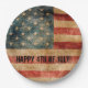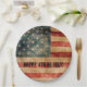 Alles Gute zum 4. Juli Paper Plate mit abgenutzter amerikanischer Flagge.