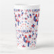 Am 4. Juli Red Blue Niedlich Party Latte Tasse blau, rot & weiß Feuerwerk & amerikanische Fahne zeigen Set auf einem blauen Hintergrund mit der Freiheitsstatue zum Unabhängigkeitstag zu feiern. Am 4. Juli, Dreh die Rückseite unseres Sommerurlaubs patriotisch einladen, um einen passenden Rücken zu sehen. Stilvolle Einladung zum Grillabend am 4. Juli, zum Arbeitstag-Party oder zu einem Party zum Thema Patriot.