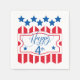 Diese Serviette bietet ein lustiges Independence Day Design von blauen Sternen, roten Streifen und einen schönen Skripttext, der "Happy 4th" lautet. Ideal für die Schwanz Gate Partys im Juli! Suchen Sie nach ID138, um passende Produkte wie Teller auf Papier, Papiertassen und vieles mehr zu sehen.