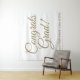 Glückwunsch Grad elegante Drehschule und Abschluss Jahr Tapestry Party Hintergrund. Benutzerdefinierte Imitate Goldtext auf weißem Hintergrund. Bearbeitbare Farben.