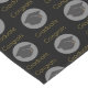 Ein gemusterter Tischläufer mit Text, der lautet: Glückwunsch Graduate. Geschrieben in einem goldfarbenen modernen stilvollen Schriftart. Illustriert mit einer Graduierkappe mit einem halbtransparenten weißen Kreis hinter sich. Set auf schwarzem Hintergrund.