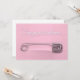 Ein normales Button für die Sicherheit von Säuglingen, das mit einem rosa Tuch mit den Worten "Glückwünsche" verbunden ist
