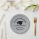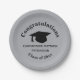 Papierplatte mit schwarzen "Gratulationen", Kappe, Name und "Klasse von 20xx" auf mattem Silber. Personalisieren Sie mit Name oder Monogramm Initial(en) und Klassenjahr mithilfe der einfachen Vorlage. Schriftart, Schriftart, Schriftart und matte Silber-Hintergrundfarbe sind anpassbar. Die perfekte Art, den Absolventen zu beglückwünschen und den Abschluss zu feiern.