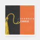 Einzigartige Graduiertennapkins für den Grad mit klassischer schwarzer und goldener Kappe auf orangefarbenem Hintergrund für den Absolvent. Bearbeiten Sie Text, um seinen Namen hinzuzufügen.