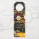 Eine schöne rostige Orange und dunkelbordeauxfarbene Herbstkuppel Blume und Kürbis über einem dunkelbraunen Stallholzhintergrund machen aus einem charmanten Happy Thanksgiving Friendsgiving festliche Flasche mit einem angesagten handgeschriebenen goldenen Typografie-Drehbuch. ++++++++ Einfach mit Ihrem Text personalisieren! Geeignet für traditionelle rustikale | Land | Bauernhof | Ansammlungen im Garten und im Freien.