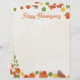 Ein Erntedank mit Motivschrift, umgeben von Herbstlauben in Rot, Gold, Grün und Gelb, umgeben von Akkorden auf hellbeigem Hintergrund. Auch ideal für Briefköpfe, die Sie in der Herbstsaison senden, da Text bearbeitet werden kann, um den Verweis auf Erntedank zu entfernen.