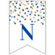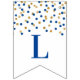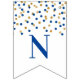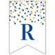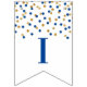 Glückwunschfahne mit dunkelblauem und Goldconfettimuster. Vervollkommnen Sie für Abschlüsse, Ruhestand, Babyduschen, Brautparty und mehr.