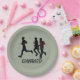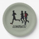 Schwarze Silhouetten von drei Läufer laufen, Joggen, mit Farbspritzen, werden auf Tellern auf Papier gedruckt. Glückwunsch sind bereits vorhanden, oder Sie können den Text im Vorlagenformular leicht anpassen. Die Hintergrundfarbe kann an jede Farbe Ihrer Auswahl angepasst werden. Vielen Dank für Ihren Einkauf bei CherylsArt auf Zazzle.