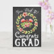 Vergnügt rustikale Imitate chalkboard Stil Schriftart lesen "Glückwunschs Grad!" auf einem grau strukturierten Hintergrund. Innerhalb der Karte ist einstellbarer Text mit einer Gratulationserklärung mit Skriptnamen Option für den Absender. Aquarellfarbener Blumenkranz und Bouquetgrafik vor der von Valarie Wade kreierten Karte. Der gesamte Text innerhalb der Karte ist einstellbar.