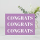 Glückwünsche, Herzlichen Glückwunsch, Lavendel und moderne weiße Note Card. Elegantes, modernes Design.