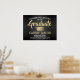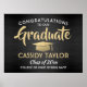 Fügen Sie eine personalisierte Touch zu einer Uni- oder High School Abschluss-Feier mit einem eleganten 18"x24" Poster in Schwarz, Gold und Weiß hinzu. Der gesamte Text ist einfach anzupassen. Das Design besticht durch schwarze Imitate mit gebürstetem metallischem Hintergrund, Imitat-Folienhülle, stilvolle moderne Typografie und handgeschriebene Schriftzeichen-Kalligraphie. Bitte beachten Sie, dass Gold farblich gedruckt ist, nicht als Folie. Dieses Partyschild ist eine elegante Art, den besonderen Tag zu feiern. Herzlichen Glückwunsch an den Absolventen!