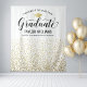 Die elegante Party-Kulisse für Fotos umfasst eine goldfarbene Graduiertenkappe, "Graduate" in der Schrift und moderne, benutzerdefinierte Texte, die mit dem Namen und der Schule des Absolventen personalisiert werden können. Ein vergoldetes Konfetti zieht den Hintergrund hoch - perfekte Party-Stütze für Gäste, vor dem sie für Bilder mit dem grad stehen können! Es stehen mehrere Größen zur Verfügung.