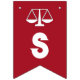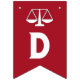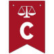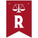 Jurist oder Jurastudium gratulieren Party Dekor mit Waage der Gerechtigkeit auf rotem Hintergrund.