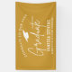 Modernes Abschluss Banner mit fett weißem Schriftsatz mit GOLD Hintergrund. Das Design zeichnet sich durch eine weiße Graduationskappe mit dem Satz "Glückwunsch zu unserem Graduate" aus. Personalisieren Sie das GOLD Abschluss Banner, indem Sie den Namen, den Schulnamen und das Abschluss Jahr des Absolventen hinzufügen. Für ein individuelleres Aussehen, ändern Sie den Hintergrund in Ihre Schulfarben. Das Abschluss Poster ist ideal für Ihr High School oder Uni-Abschluss Party!