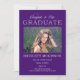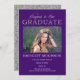 Klassische und elegante aber glitzernde "Glückwunschs to Our Graduate" lila und silberfarbene Imitate Glitzer Abschluss Design mit einem Single Foto vorne mit dem Wort "Glückwunschs to Our" in einem nicht bearbeitbaren Skript Schriftart und das Wort "GRADUATE" in Imitat Glitzer . Der Name, die Schule, das Unterrichtsjahr, das Datum des Abschlusses und die Zukunftspläne liegen unter dem Foto. Auf der Rückseite befindet sich ein Imitat mit silberfarbenem Glitzer. Design by Holiday Hearts Designs (Rechte vorbehalten).
