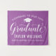 Elegante Abschlussfeier Hintergrund-Zeichen gratuliert und feiert Ihren Absolvent im Stil! Das Design umfasst eine Graduiertenkappe, einen "Graduate" in der Schrift und einen modernen, individuellen Text, der mit dem Namen und der Schule des Absolventen personalisiert werden kann. Violett lila- und Weißfarben können individuell angepasst werden.