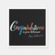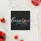 Personalisierte Lehrer Ruhestandsnapkins. Jede Serviette hat ein inspiriertes schwarzes Tafelmuster, mit regenbogenfarbenen Buchstaben und lautet: "Herzlichen Glückwunsch zur Pensionierung". Zusätzlich kann jeder individuell auf den Namen des abbrechenden Lehrers angepasst werden. Ein hübsches Accessoire für Schüler, Schulen, Kollegen, Familien oder Freunde, die ein Party organisieren, um sich von einem Lehrer zu verabschieden. In diesem modernen Design sind auch passende Karten, Aufkleber, Banner und Gifttaschen erhältlich.