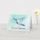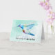 Glückwünsche an Ihrem Adoptionstag mit handgemaltem Watercolorkolibri mit den Wörtern "glauben an die Wunder", die auf die Front geschrieben werden.