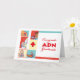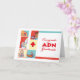 Glückwünsche auf dem Erwerben eines Associate degree in der Krankenpflege (ADN). Niedliche Illustrationen der Krankenschwestern (Mann und Frau) und ihrer Patienten. Farbschema in weißem, in Rotem und Blau mit anderen Akzentfarben. Krankenpflege-Cliparthöflichkeit von Openclipart. Kunst, Bild und Verscopyright © Shoaff Ballanger Studios.
