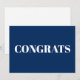 Glückwünsche marinieren blau-weiß minimalistisch modernen eleganten Chic Gratulationen Note Card. Weißer Text auf schlichtem marineblau-Hintergrund.