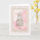 Glückwunschkarte für Hochzeiten mit einem schönen Kuchen, einem hellrosa Hintergrund und einem digitalen Spitzen-Rahmen. Dank Design Cuts und Creative Fabrica für einige der Elemente im Design. Die Wörter auf der Innenseite können geändert werden.