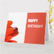 Aufnahme von Marienkäfer, der über die orangefarbenen Blütenblätter einer Gerbera krabbelt. Hell und freundlich vor weißem Hintergrund aufgenommen und durch einen im gleichen Farbton der Blütenblätter gehaltenen Rahmen rechts begrenzt. Der Schriftzug Happy Birthday wird in weißer Schrift passend zum Hintergrund der Blütenblätter aus dem orangefarbenen Rahmen hervorgehoben. Modernes, helles und freundliches Design.