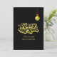 Elegante schwarze Neujahrskarte mit „Frohes Neues Jahr“ in glänzender Goldschrift. Neben der Begrüßung sitzt ein goldenes festliches Ornament, das mit einer hellroten Schleife dekoriert ist und einen warmen und festlichen Touch hinzufügt. Das Gesamtbild ist luxuriös, modern und perfekt für Neujahrsgrüße und saisonale Feiern.