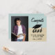 Glückwunsch Grad Blue Rustic Foto Abschluss Card. Gratulieren Sie einen Absolvent mit dieser phantastischen Karte mit einem Foto. Abschluss-Karte mit Graduierungsmütze, Text-Glückwunsch Grad, Name des Absolventen, Schulname und Klasse der - personalisieren Sie mit Ihren Daten. Beige rustikale Textur und blauer Hintergrund. Machen Sie Ihren eigenen Abschluss Gratulationskarte.