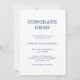 Klassische Abschluss-Ankündigungskarte in Marineblau und Weiß mit einem einfachen und minimalistischen Design mit "Glückwunschs Grad" und dem Namen des Absolventen in fett gedruckt. Die Rückseite ist ein massives Marineblau. Eine traditionelle Ankündigungskarte mit männlicher Touch für einen Jungen.