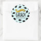 Feiern Sie jeden Absolventen mit diesem lustigen, maßgeschneiderten Design! Es zeigt "Glückwunschs Grad" mit einem schwingenden goldenen Banner, umgeben von schwarzen Graduierungskappen in der Luft geworfen. Personalisieren Sie diesen einzigartigen, dekorativen Aufkleber mit dem Namen und der Klasse des Absolventen. Der pastellblaue Hintergrund kann in eine beliebige Farbe geändert werden. Es ist der perfekte Aufkleber für Absolventen von High School, Uni Absolventen oder jeden Grad! Feiern Sie ihre Errungenschaft mit einem einzigartigen, individuellen Aufkleber!