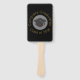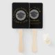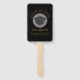 Ein Handventilator für den Abschluss. Auf der Vorderseite steht Glückwunsch Absolventen, Klasse von 20xx und auf der Rückseite der Absolvent der Name und Schule und Klasse von 20xx, in einer goldenen Farbe geschrieben. Entwickelt mit einem schwarzen Graduierdeckel, umgeben von einem halbtransparenten weißen Kreis. Schwarzer Hintergrund mit goldener Schrift ist einfach, aber stilvoll.