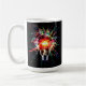 Eine auffällige Coffee Tasse mit einer hellen, leuchtenden Glühbirnen-Illustration, die Kreativität und helle Ideen symbolisiert.