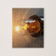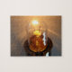 Die Glühlampe leuchtet mit einem warmen orangefarbenen und weißen, heißen Glühfaden. Perfektes Geschenk für jeden, der sich für Licht, Strom, Radio und Technologie interessiert.
