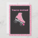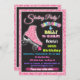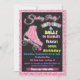 Superspaß Glühen in den dunklen Disco-Rollen-Skatengeburtstags-Party Einladungen. Kennzeichnet glühenden rosa Imitat Sequin-Rollen-Skate und einen Internatsschüler und eine Spaßtypographie. Hand gezeichnete Illustration durch McBooboo. Treten Sie mit mir bitte mit jeden möglichen Problemen, Änderungen oder etwas in Verbindung, die kundenspezifisch sind! Diese glühen nicht in die Dunkelheit.