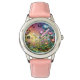 Kinderuhr aus Edelstahl mit rosa Lederarmband