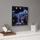 Ein leuchtender Dinosaurier mit lebhaften Energiewegen erforscht eine kosmische Landschaft voller Sterne und schafft so ein faszinierendes visuelles Display.
