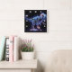 Glühende Dinosaurier Roaming in einem sternförmige Quadratische Wanduhr