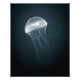 Ein dunkles und wunderschönes Foto aus einer zarten, leuchtenden weißen Qualle vor einem dunkelblauen Hintergrund. Wenn Sie die Größe des Drucks ändern möchten, klicken Sie auf "Anpassen" und ändern Sie die Größe des Bildes, um unerwünschten Leerraum an den Kanten zu eliminieren.
